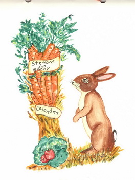 Follow Stewart's very own itinerary throughout "A Year In The Life Of A Rabbit." Please excuse his printing! He always gets his "e" and "r" backwards and sometimes he spells wrong. But he is still very smart for such a young rabbit! Stewart has been very patient to pose for new paintings each year!